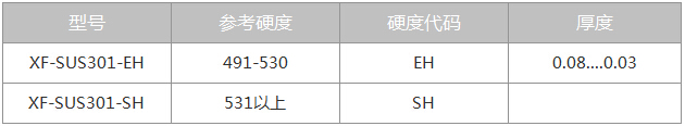 301超薄、超硬特種不銹鋼帶性能一覽表