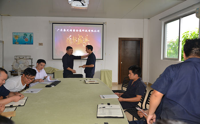 為肯定九月份全體生產人員的付出與努力,進一步提高員工的積極性,激發生產車間潛在力,爭創產量新高峰!1019日下午,在鑫發三樓會議室舉行了“鑫發頒獎盛典”,獎勵九月份全體生產員工為突破產量貢獻的汗水與辛勞。